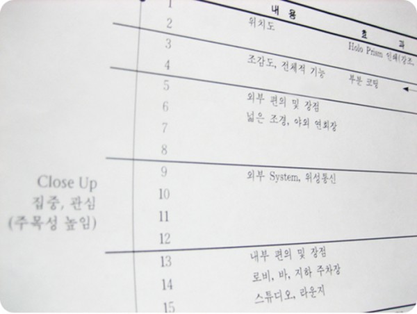 1994년 분양광고 기획서라...ㅎ그땐 어떻게하믄 로트링펜으로 수정안하고 잘 긋고 그려낼까 했었구...초짜시절엔 수많은 시안들을 칼라이즐 뜨고 3M으로 붙였다 떼었다...했었죠...수많던 제판집들...그리고 밤샘...그러고보니 벌써 불혹을 바라본다는^^ㅎ도우리 제판집을 아시는분이 있을까요...